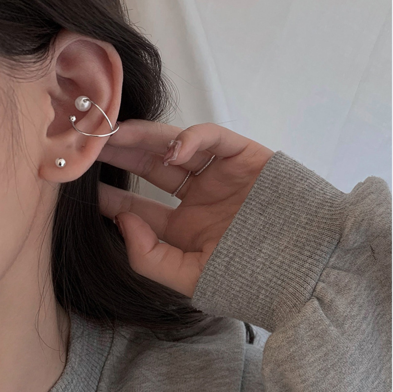 クロスラウンドパールイヤーカフ